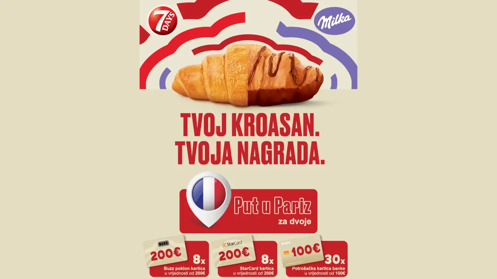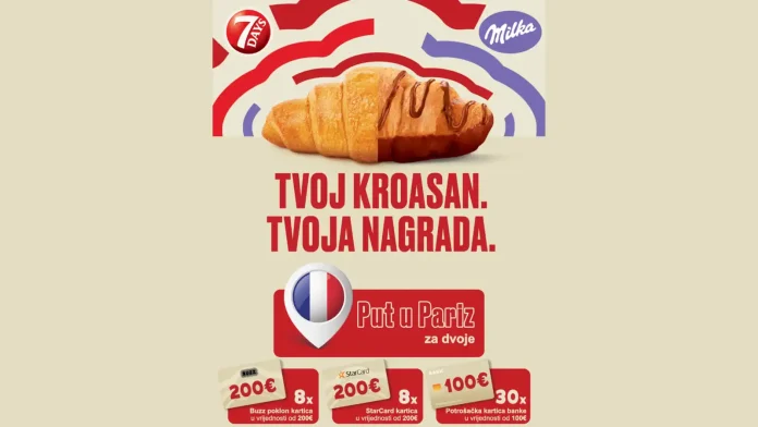 Nagradna igra uz 7DAYS i Milka kroasane traje od 02.03.2026. do 31.03.2026.