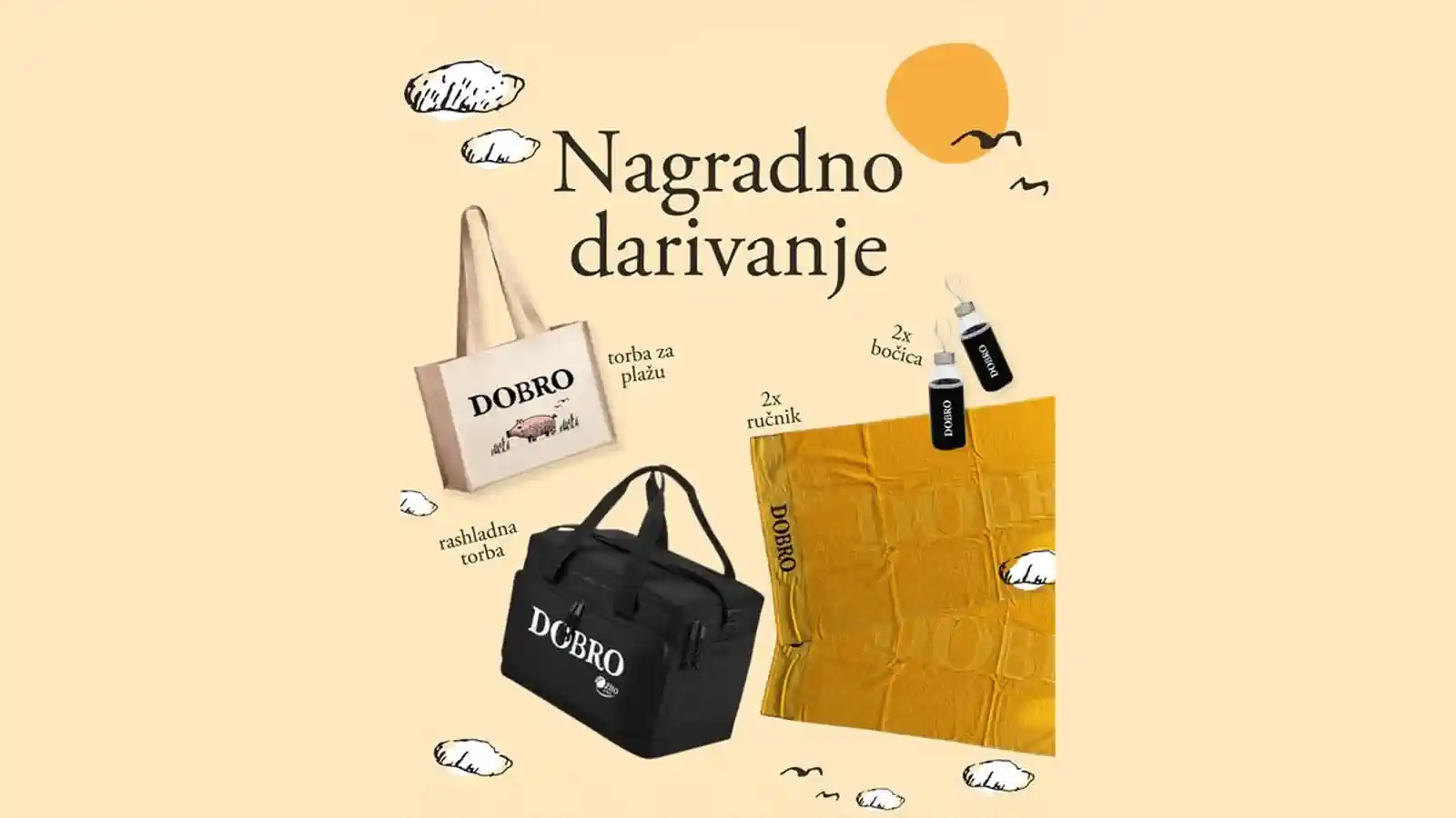 - Na Instagramu: 1 x DOBRO ljetni paket koji se sastoji od: jedne (1) DOBRO torbe za plažu, jedne (1) DOBRO rashladne torbe, dva (2) DOBRO ručnika za plažu i dvije (2) DOBRO bočice za vodu na Instagram profilu