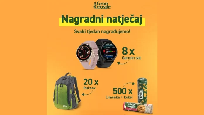 - 8 dobitnika dobit će Garmin sat i Grancereale paket koji uključuje paket Grancereale keksa (jedan okus keksa) i limenku za pohranu keksa.