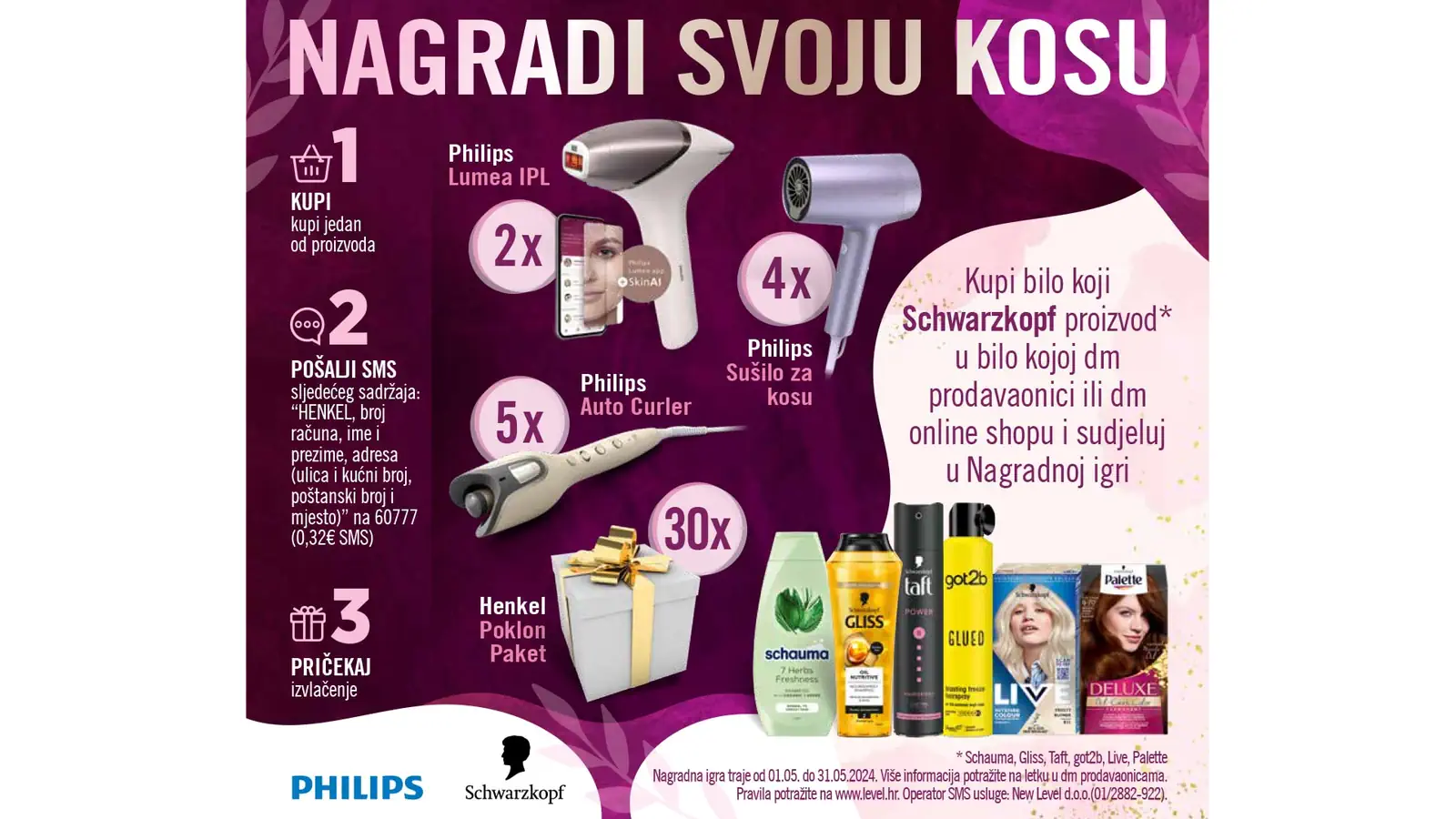 - Kupite bilo koji Schwarzkopf proizvod (Schauma, Gliss, Taft, got2b, Live, Palette) u dm prodavaonicama