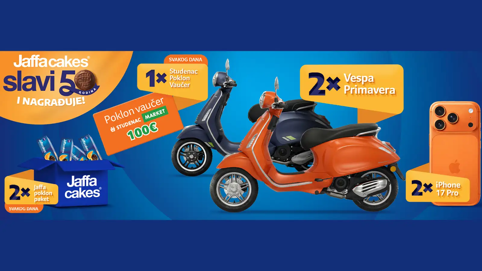 Sudjeluju isključivo: JAFFA CAKES CLASSIC 150 g (EAN 8600114000013), JAFFA CAKES CLASSIC 300 g (EAN 8600114000211) i JAFFA CAKES CHOCO 155 g (EAN 8600114005360).