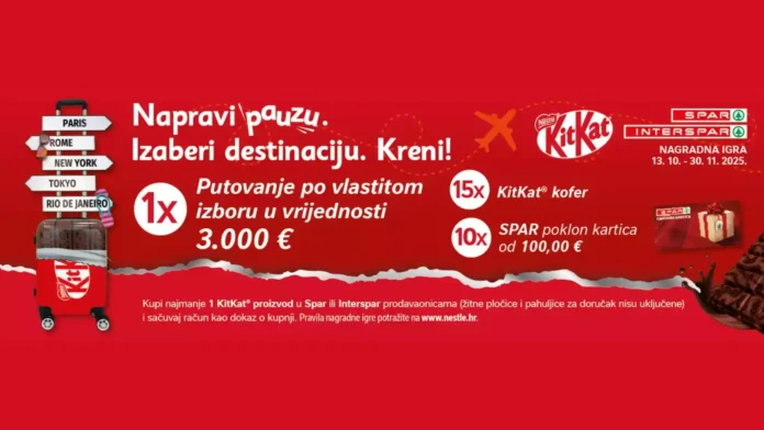 Prvo će se izvući 1 dobitnika glavne nagrade Putovanje po vlastitom izboru, zatim 15 dobitnika nagrade KitKat kofera i na kraju 10 dobitnika Spar poklon kartice.