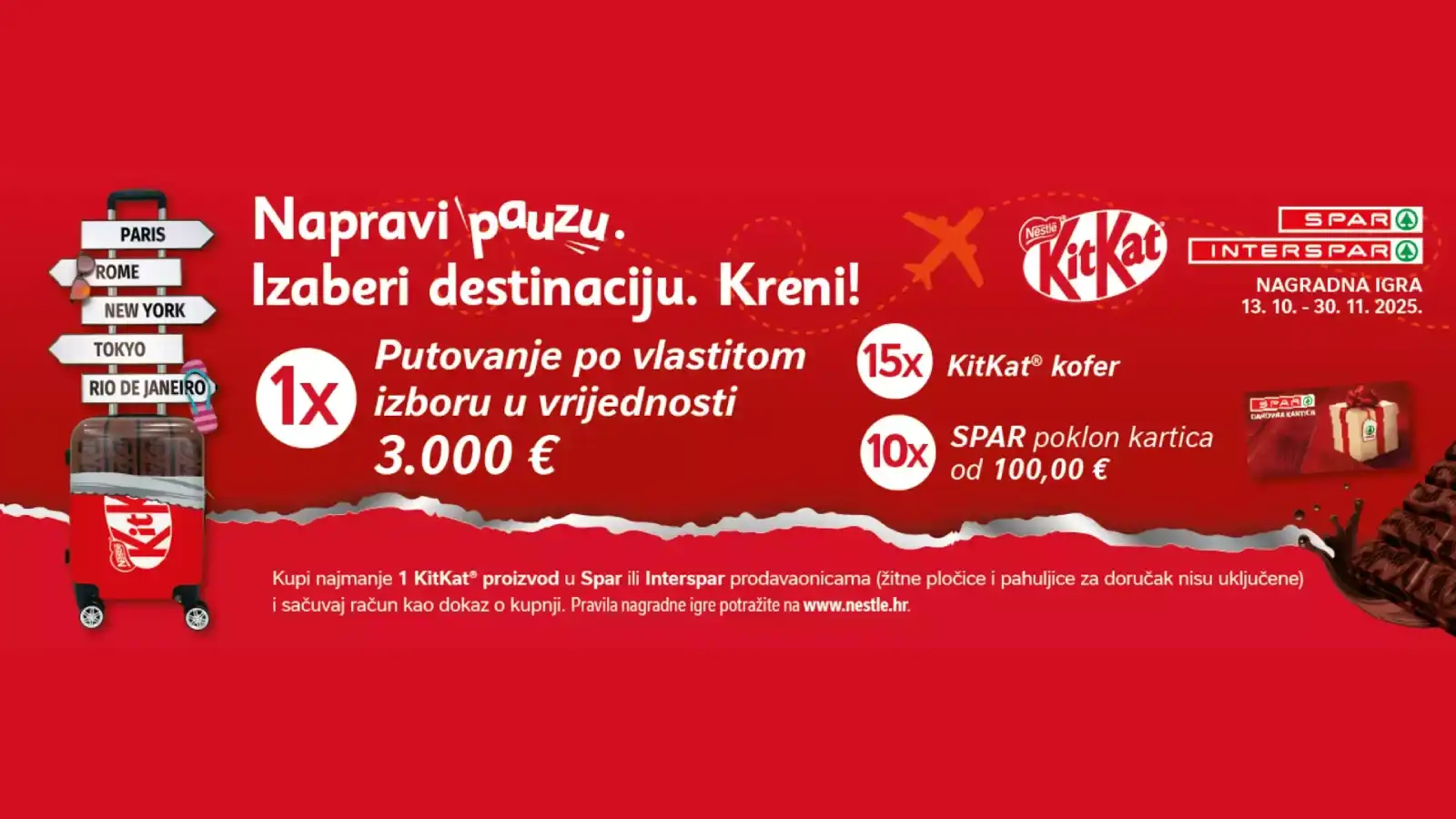 - Na bilo kojem SPAR prodajnom mjestu u Republici Hrvatskoj napraviti kupnju najmanje jednog KITKAT proizvoda koji sudjeluje u nagradnoj igri.
