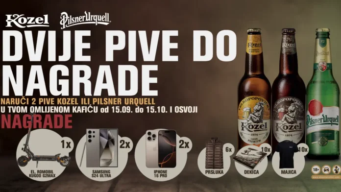 Kozel i Pilsner Urquell nagradna igra traje od 15.09.2025. do 15.10.2025. u 23:59:59.