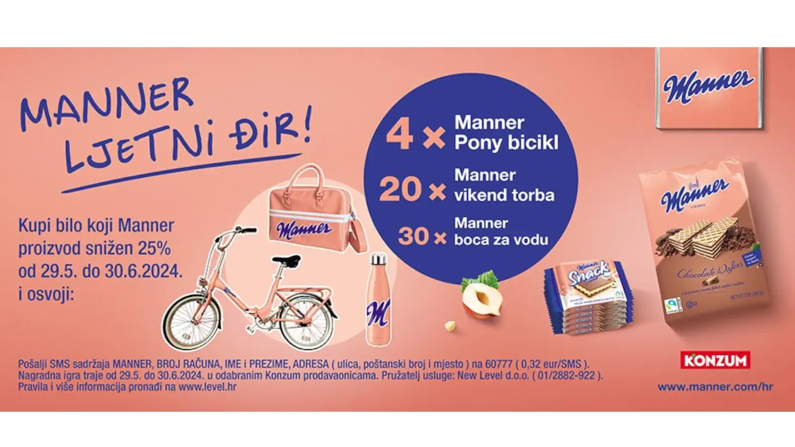 - Za vrijeme trajanja nagradne igre na bilo kojem Konzum prodajnom mjestu na području RH kupiti bilo koji Manner proizvod
