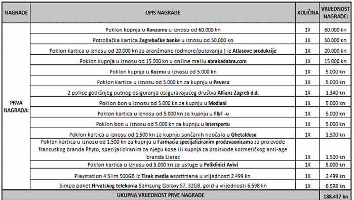Na taj način svaki sakupljeni bod u razdoblju trajanja nagradne igre predstavlja DVOSTRUKU prijavu za nagradnu igru i time povećavate mogućnost za dobitak. Npr. ako u razdoblju trajanja nagradne igre ostvarite 300 bodova i pošaljete SMS poruku s gore navedenim sadržajem, sudjelujete u nagradnoj igri s dvostruko više prijava, odnosno 600 prijava.