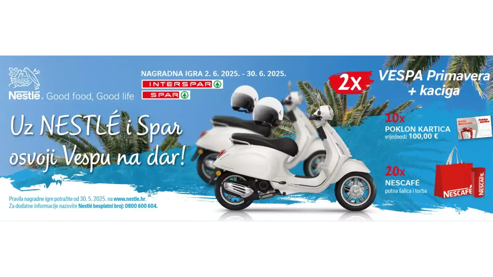 Prvo će se izvući dva dobitnika Moped Piaggio Vespa Primavera 50 FL E5 i kacige Vespa Visor 4.0, nakon toga 10 dobitnika jedne Spar poklon kartice, te 20 dobitnika jedne Nescafé putne šalice i torbe.