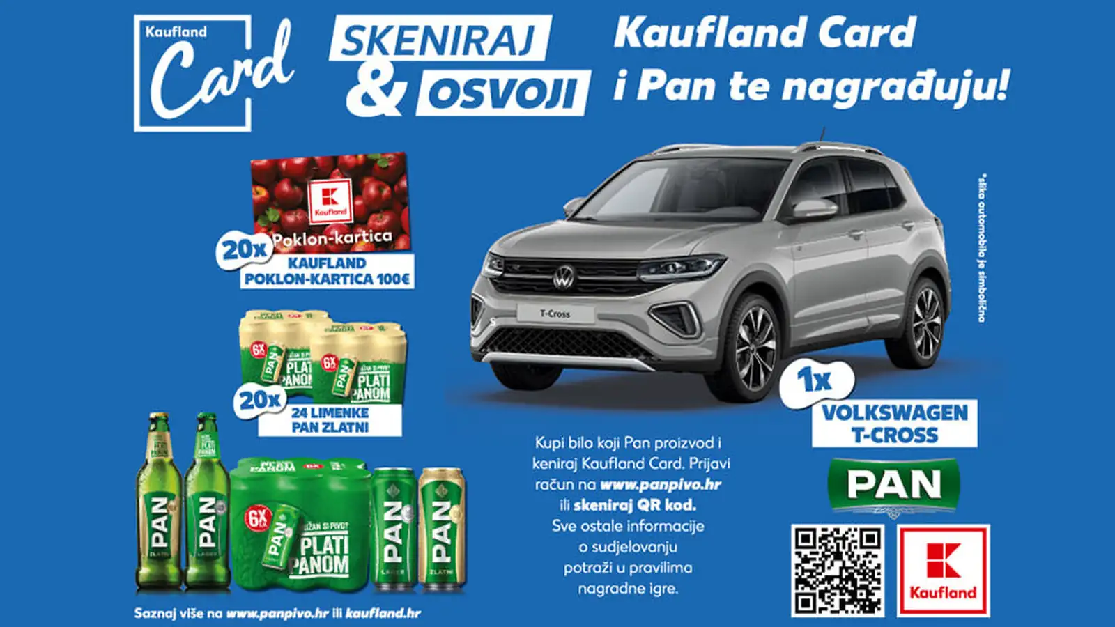Kupite bilo koje Pan pivo na bilo kojem Kaufland prodajnom mjestu u Hrvatskoj i koristite svoju Kaufland Card uz aktivan korisnički račun, zatim prijavite broj računa i broj Kaufland Card kartice ispunjavanjem obrasca na www.panpivo.hr (ime i prezime, adresa, kontakt broj i učitavanje fotografije računa) ili skeniranjem QR koda s promotivnih materijala.