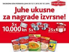 Podravka se stvarno potrudila ove godine i ima veliki broj nagradnih igara. Kako bi sudjelovali u ovoj nagradnoj igri Podravka juha požurite u Konzum prodavaonice, odaberite 5 omiljenih Podravka juha, obradujte obitelj pravim domaćim okusom Podravka juhe.