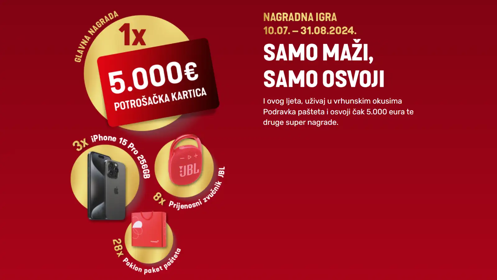 Podravka nagradna igra “Samo maži, samo osvoji” traje od 10.07.2024. do 31.08.2024.