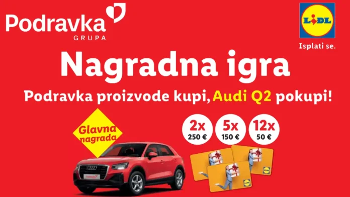 Poštovani, sve informacije o nagradnoj igri se nalaze na stranici https://nagradnaigra.com.hr/podravka-nagradna-igra-2026-podravka-proizvode-kupi-automobil-audi-q2-pokupi/