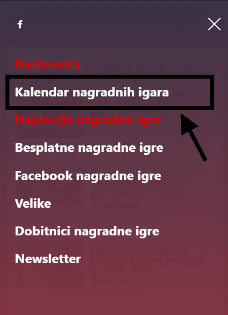 - na desktopu – u gornjem dijelu stranice, u glavnom izborniku, pronaći ćeš “Kalendar nagradnih igara“