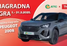 Trajanje:KTC nagradna igra traje od 01.03.2025. do 31.03 2025. godine.Nagrade:Glavna nagrada:1 x automobil PEUGEOT 2008 STYLE Pure Tech 100 vrijednosti 22.762,76 eurOstale nagrade:10 x poklon paket...
