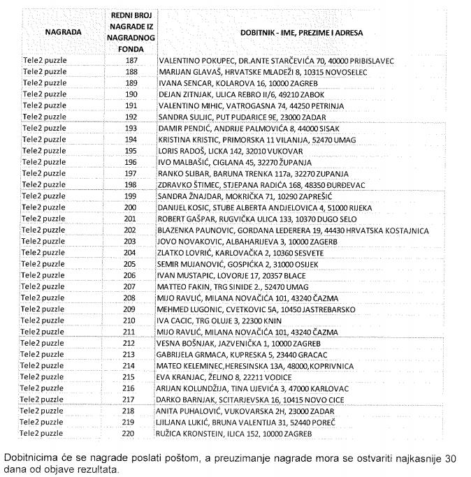 Osim 20 najsretnijih, koji će osvojiti Sony Xperia Z3 mobitel, nagradit će se još 200 dobitnika pri čemu će 100 igrača osvojiti Tele2 majicu, a preostalih 100 Tele2 puzzle.