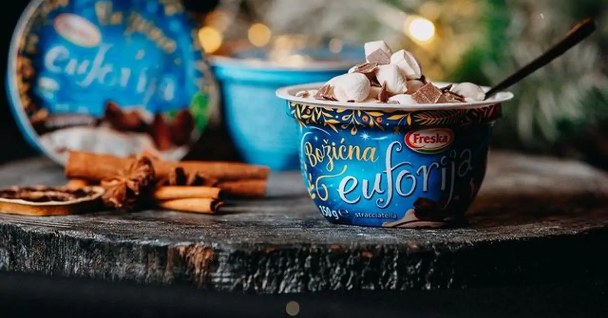 - 10 x Freska euforija poklon paket koji uključuje 10 komada Freska euforija 150 g (okusi stracciatella i crispy mix)
