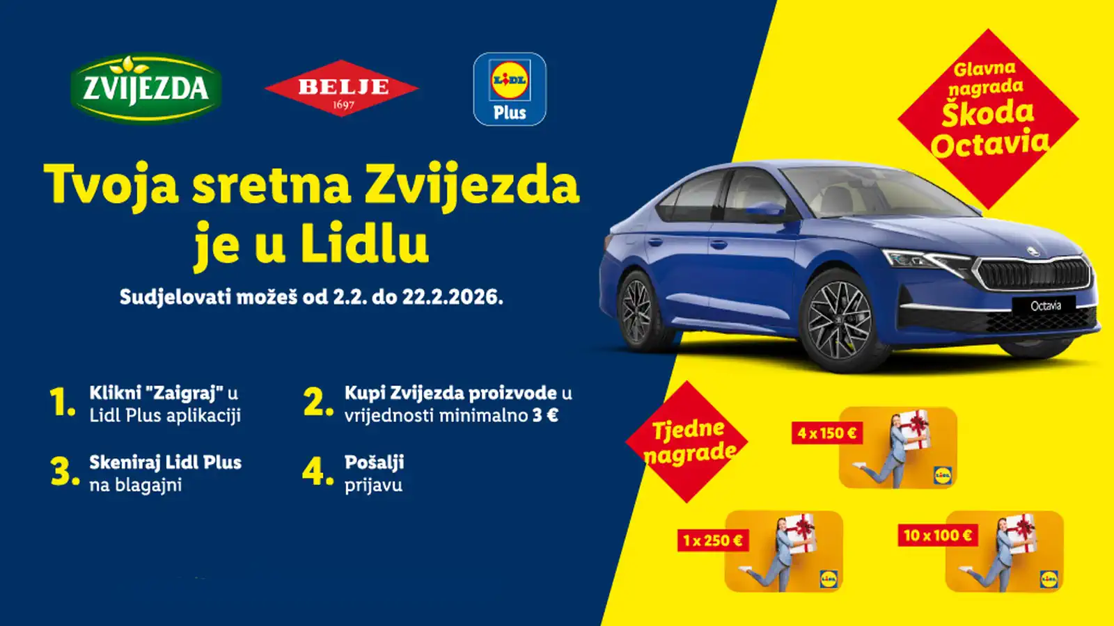 Zvijezda nagradna igra za auotmobil Škoda Octavia traje od 02.02.2026. do 22.02.2026.